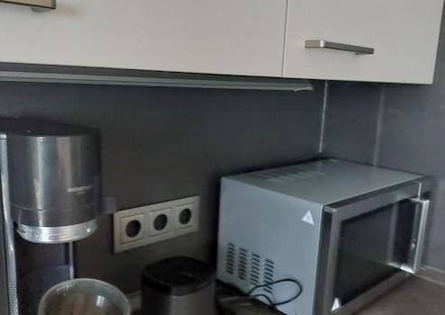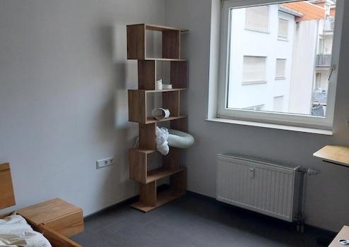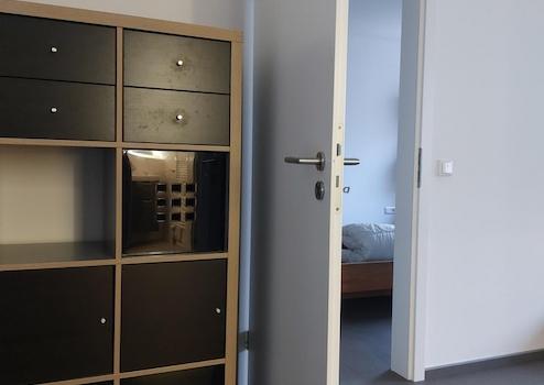 Wir vermieten eine 2- Zimmerwohnung mit kompletter Einbauküche, großem Kühlschrank, Mikrowelle, Spülmaschine, Wassersprudler, Einbauschrank, Waschmaschine, Trockner, Schreibtisch, Sonos-Lautsprecher, mobiler Klimaanlage, modern saniertem Duschbad. Die Wohnung befindet sich im 3. OG eines Mehrfamilienhaus mit Aufzug zum ruhigen Innenhof. Einen Fluchtweg mit "Balkontür" gibt es von der Wohnung aus. Es ist zwar kein Balkon, aber kann durchaus zum "Luftschnappen" genutzt werden.