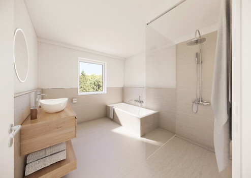 - Walk-in-Dusche mit Glastrennwand