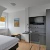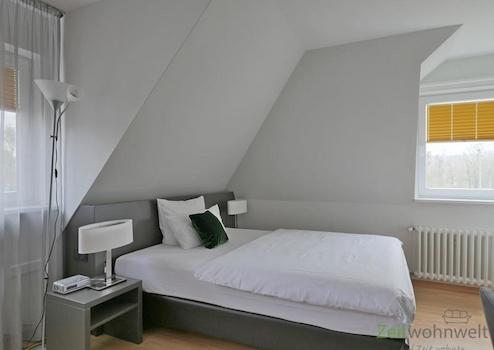 ### Please note the availability date! Bitte das Verfügbarkeitsdatum beachten! ### möbliertes Dachgeschoss-Apartment mit breiter Fensterfront; WLAN inklusive; großer Wohnraum mit breitem Bett, Kleiderschrank, Wand-TV, ...