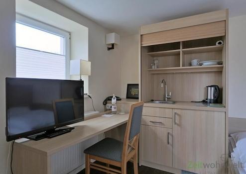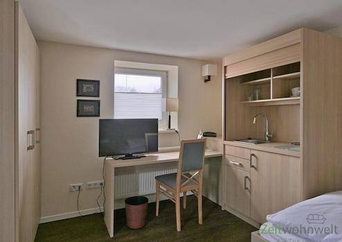 ### Please note the availability date! Bitte das Verfügbarkeitsdatum beachten! ### kleines möbliertes Apartment mit separatem Hauseingang, WLAN; Wohnraum mit Bett, Kleiderschrank, Schreibtisch, TV, Schrank-Singleküche; ...