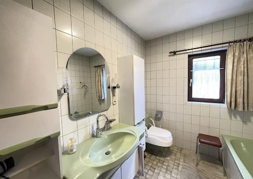 Dennoch ist das Haus insgesamt in die Jahre gekommen. Leitungen (z. B. Elektroinstallation) sollten erneuert werden. Im Kellergeschoss stehen Räume mit einer Nutzfläche von ca. 80 m². Dort sind Putz- und Feuchteschäden zu beseitigen. Auch energetische Modernisierungsmaßnahmen sind empfehlenswert, um zukünftige Energiekosten nachhaltig zu senken und den Wohnkomfort zu steigern.