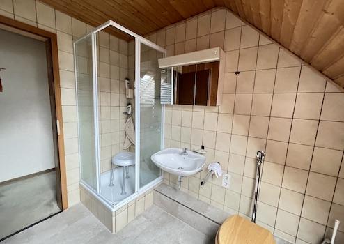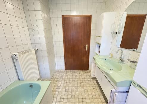 Hier befinden sich drei weitere Zimmer sowie ein Badezimmer. Zwei zusätzliche Räume sind derzeit noch nicht ausgebaut (Nutzfläche ca. 16 m²) – ganz nach dem Motto „aus Alt mach Neu“ eröffnen sich hier attraktive Ausbaureserven für zusätzlichen Wohnraum, ein Studio oder ein großzügiges Elternrefugium.