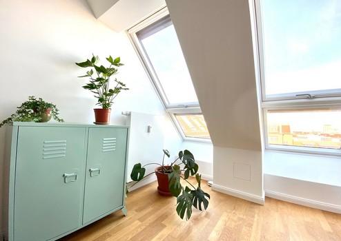 We offer you an attic apartment built in 2015 in the heart of Prenzlauer Berg. The generously cut rooms, the open kitchen-living room with the view over Berlin invite you to stay.