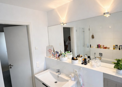 Das Objekt kann ab 01.05.2024 bezogen werden, nach Absprache mit der Vormieterin eventuell vorher. Im Erdgeschoss sind 60 x 60 Qualitätsfliesen in hellgrau (Perla) verarbeitet, in den Wohn- und Schlafzimmern ist eine hochwertige Eichenholzdiele verlegt. Die Bäder sind mit Grohe Armaturen, Spiegeln mit Beleuchtung sowie einem Waschtisch mit Unterschrank der Firma Burgbad ausgestattet. Toiletten, Glasdusche und Badewanne fügen sich in das moderne Konzept der Wohnung ein. Die Wände sind verputzt und weiß gestrichen. Weiße Türen mit Edelstahlgarnitur sowie weiße Fenster mit Sicherheitstechnik und elektrischen Rollladen runden das Gesamtbild im Inneren des Hauses