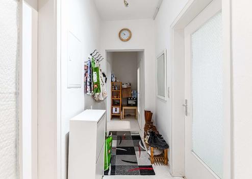 Besonders praktisch im Alltag sind das Tageslichtbad mit Badewanne und Duschabtrennung sowie ein separater WC-Bereich, wodurch sich die Wohnung auch bei Besuch oder zu zweit deutlich komfortabler nutzen lässt; zudem ist im Bad ausreichend Platz für Waschmaschine/Haushaltsgeräte vorhanden. Abgerundet wird das Gesamtbild durch einen funktionalen Flur mit Stell- und Abstellmöglichkeiten – eine rundum stimmige Kombination aus guter Raumwirkung, sinnvoller Aufteilung und einem hellen, gepflegten Erscheinungsbild