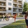 Die Tiefgarage ist ein zentrales Element des Quartiers: Stellplätze sind fest zugeordnet und mit eigener Steckdose ausgestattet, die dem Wohnungszähler zugeordnet ist – so ist die einfache Nachrüstung einer Wallbox gewährleistet. Mehrere großzügige Fahrradstellräume mit E-Bike-Lademöglichkeiten und Plätzen für Lastenräder runden das Angebot ab. Durch die unterirdische Straßenführung bleibt das Quartier oberirdisch, verkehrsberuhigt und familienfreundlich.