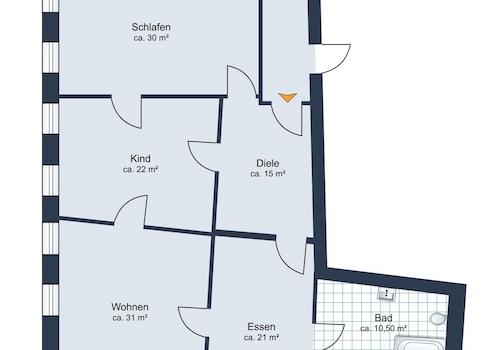 Alte Parkettböden verleihen den Räumen eine warme Wohnatmosphäre. Gleichzeitig sorgen neu eingebaute Fenster für eine verbesserte Energieeffizienz sowie angenehme Ruhe trotz der zentralen Lage.