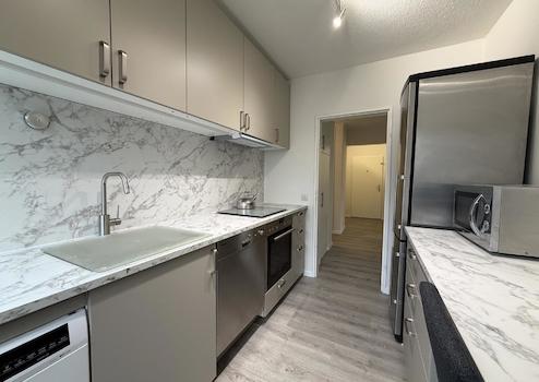 Besonders hervorzuheben sind die zahlreichen Einbauschränke, die viel Stauraum bieten, sowie die neue Einbauküche mit Markenelektrogeräten inklusive Waschmaschine und Spülmaschine.