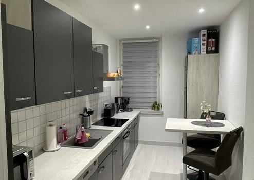 Die Küche ist funktional gestaltet und mit modernen Einbauten ausgestattet. Sie bietet genügend Arbeitsfläche sowie Stauraum und eignet sich gut für den täglichen Gebrauch. Auch die Küche mit Geräten kann bei Bedarf für 2000,00 Euro übernommen werden - den Abstand besprechen Sie am besten mit der alten Mieterin. Ansonsten kann die Wohnung auch ohne Abstand und ohne Küche angemietet werden.