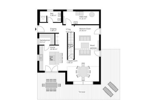 Eine gedämmte Bodenplatte mit Frostschürze ist bereits inklusive. Auf Wunsch realisieren wir Ihr Haus auch mit Nutz- oder Wohnkeller. Die Treppen entstehen in der hauseigenen Produktion in Weinsheim. Die Fassade gestalten Sie modern mit Putz, Holz oder Klinker, inklusive vollflächiger Gewebearmierung für dauerhafte Substanz.