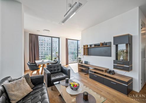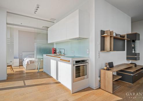 Diese hochwertige, möblierte 2 Zimmer-Wohnung im 3. Obergeschoss des renommierten Friends Tower I vereint modernes Design mit langfristigem Anlagepotenzial. Auf ca. 63 qm bietet die Immobilie ein durchdachtes Wohnkonzept mit offenem Wohn-/Essbereich, maßgefertigter Schreinerküche von Holzrausch, edlem Eichenparkett und Fußbodenheizung.