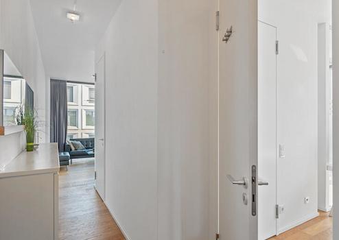 Moderne Ausstattungsdetails wie elektrisch steuerbare Aluminiumjalousien, weiße Sockelleisten, hochwertige Einbauten und effektive Querlüftung unterstreichen die Qualität der Immobilie. Die Wohnung erfüllt höchste Ansprüche an Wohnkomfort, ein attraktives Argument für Mieter wie auch Eigennutzer.