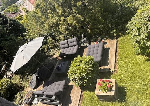 Die Terrasse lädt zu lauen Sommerabenden ein, der kleine Pool bringt Erfrischung und der Garten schenkt Ruhe, Privatsphäre und Platz für kreative Ideen.