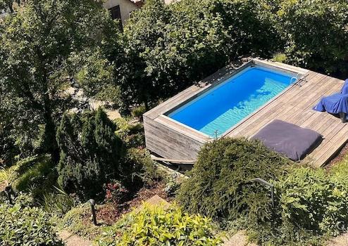 Außenbereich: Terrasse, gepflegter Garten, kleiner Pool, Gartenhaus, Loungebereich