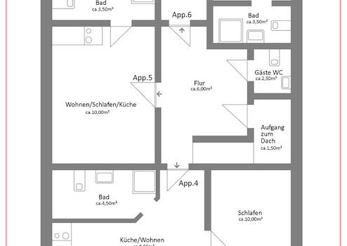 - Sechs Wohneinheiten: Jede der Einheiten verfügt über eine