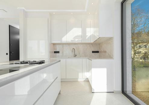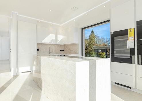 - Hochwertige Einbauküche mit Marken-Elektrogeräten und Quarzit-Arbeitsplatte
