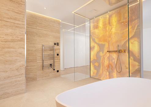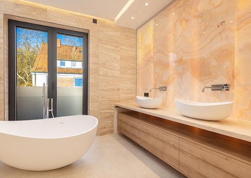 - Tageslichtbad mit Onyxplatten, Ambientebeleuchtung und Designerarmaturen