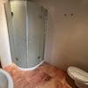 Vom Flur aus kommt man in ein hellgefliestes und modernes ca. 6m² großes Bad. Das Bad ist ausgestattet mit einen Waschmaschinenplatz, einem großen Fenster und einer viertelkreis Dusche.