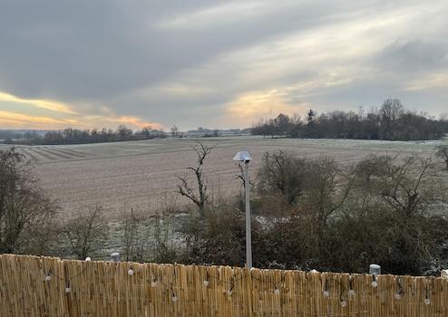 Direkt vor der Wohnung befindet sich eine Bahnhaltestelle, von der aus Sie bequem nach Frankfurt fahren können. Gegenüber erstreckt sich ein Feld, das zur Erholung einlädt.