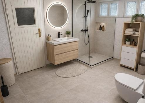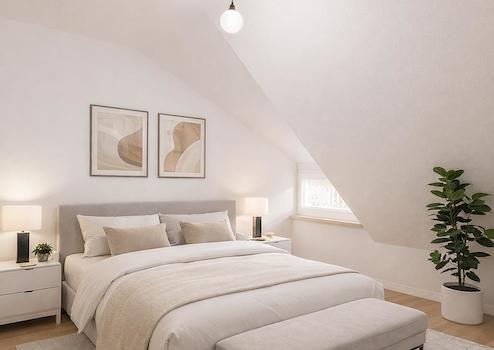 Altbaucharme trifft auf Moderne: Die wichtigsten Gewerke (Dach und Fassade) sind bereits saniert, von innen wartet das Häuschen auf eine gestalterische Hand. Wand- und Bodenbeläge sowie die Duschsituation im Keller sind nicht mehr zeitgemäß. Hier empfiehlt es sich, den Keller zusätzlich zur Wohnfläche auszubauen und ein modernes Bad einzurichten. Die abgebildeten Grafiken wurden teilweise mit KI erzeugt, um Ihnen das Renovierungspotenzial maßstabsgetreu zu veranschaulichen.