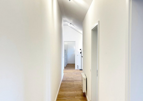 Über das allgemeine Treppenhaus gelangt man in die frisch hergestellte Dachgeschosswohnung (2. Obergeschoss).