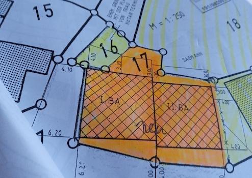 Die zum Wohnhaus gehörende Grundstückgröße beträgt ca. 300 m² (Grundstücknummern 17 und 16).