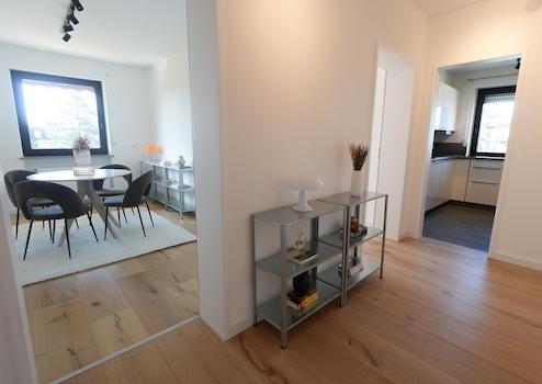 • Bodenbeläge: Hochwertiger Echtholz-Eichenparkett mit integrierter Trittschalldämmung