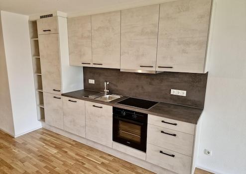 Eine hochwertige Einbauküche mit Induktionskochfeld, Backofen, Geschirrspüler sowie großer Kühl-Gefrierkombination ist bereits im Mietpreis enthalten und ermöglicht einen sofortigen Einzug ohne zusätzlichen Aufwand.
