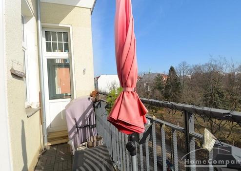 Ein nach Südosten ausgerichteter Balkon mit Gartenmöbeln lädt dazu ein, den Morgenkaffee an der frischen Luft zu genießen oder den Tag bei einem entspannten Sundowner ausklingen zu lassen.