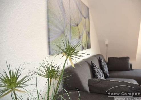 Diese TOP Wohnung wurde grundsaniert. Alle Räume gehen vom zentralen Flur ab. Das gemütliche Wohnzimmer ist der größte Raum in der Wohnung. Daneben liegt das Arbeits bzw. Gästezimmer. In der voll ausgestatteten Küche gibt es einen Tisch an dem man mit 2 Personen Frühstücken kann. Das Schlafzimmer mit einem Doppelbett liegt ruhig zum Garten. Die Wohnung ist auch für 2 Kollegen geeignet. Bei 2 Personen beträgt die Miete 1350,00€