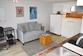 Wohnraum mit Sofa, Schreibtisch mit Stuhl, Flachbildschirm Smart TV, Schrankbett 90x200 cm, Schrank,