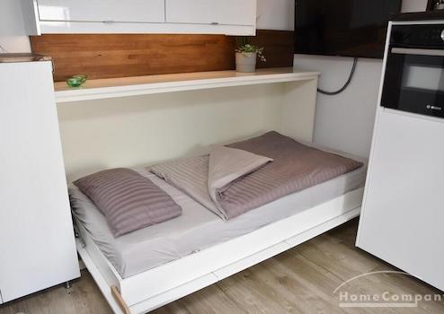 Modernes Apartment im 4.OG mit Aufzug in zentraler Lage, Calenberger Neustadt, 5 Gehminuten bis Innenstadt! Nur an Nichtraucher. Wohn-/Schlafzimmer mit Bett 1,20x2 m, weißes Ledersofa, Tisch mit 2 Stühlen, Flachbild-TV ...