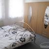 Schlafzimmer mit Bett 180x200 cm, Nachttisch, Kleiderschrank.