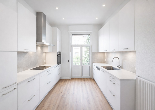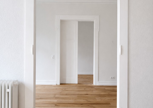 Diese kernsanierte 3,5-Zimmer-Wohnung mit ca. 112 m² Wohnfläche kombiniert modernen Wohnkomfort mit klassischem Altbaucharme. Hohe Decken, weiße Wände, Parkettböden und Kassettentüren verleihen der Wohnung ein stilvolles Ambiente.