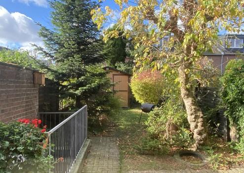 Pflegeleichter und schöner Garten mit einem kleinen Gartenhaus. Separater Gartenzugang.