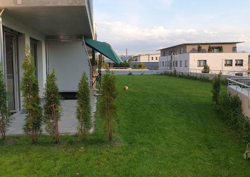 als zusätzlicher Lebensraum, angrenzend an den Gemeinschaftsgarten mit Rasenflächen, Büschen und Bäumen zur Nutzung, Pflege durch Hausmeister