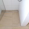 Boden: großformatiges Feinsteinzeug, helles Braun, Rutschklasse 3