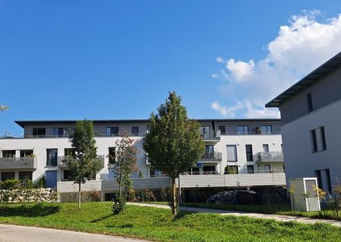 Helle, moderne Wohnung im Erdgeschoss der Georg-Huber-Str. 14 in Zorneding mit 3 Zimmern, Bad, Gäste-WC, Abstellraum, Keller und großer, überdachter Terrasse (11m²).