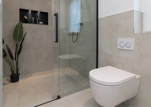 Das stilvoll sanierte Duschbad besticht durch seine hochwertige und zeitlose Ausstattung und unterstreicht den modernen Charakter der Wohnung.