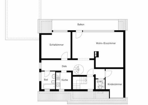 Diele - Wohn-Essbereich mit Zugang auf den Balkon - Schlafzimmer - Kinderzimmer - Küche - Bad - Gäste-WC