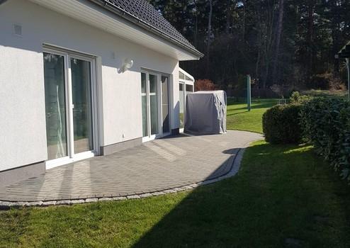 Am Haus befinden sich 2 Terrassen, eine überdachte ca.14qm,die andere erstreckt sich über die ganze Länge des Hauses .