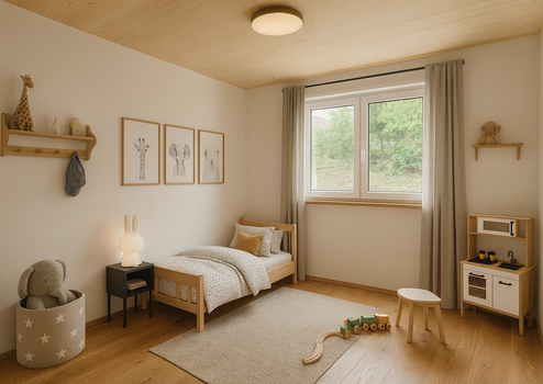 Dazu kommt eine moderne Wärmepumpe mit Fußbodenheizung und integrierter Kühlfunktion sowie ein Energieverbrauch von unter 30 kWh/m²a (Energieeffizienzklasse A+). Heizen, Kühlen, Warmwasser, Strom – alles aus einer Hand, hocheffizient und dauerhaft günstig.