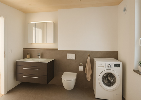- Bad: Tageslichtbad mit großzügiger Dusche, Gäste-WC, Waschmaschinen- & Trockneranschluss