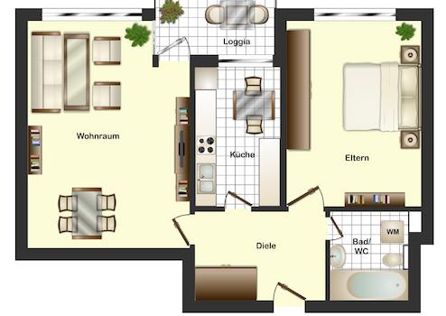 Zwei-Zimmer-Wohnung mit moderner Ausstattung