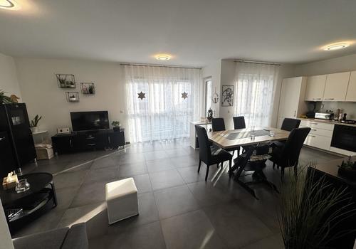 Bereits beim Betreten der Wohnung eröffnet sich Ihnen der offen gestaltete Wohn- und Essbereich. Viele Fenster sorgen für eine helle, freundliche Atmosphäre und lassen viel Tageslicht in Ihre Räume. Von hier aus gelangen Sie direkt auf den Balkon, der Ihnen einen schönen Platz für entspannte Stunden im Freien bietet. Die angrenzende Küche fügt sich harmonisch in den Wohnbereich ein und wird durch eine praktische Abstellkammer ergänzt. Ein Gäste-WC rundet diese Ebene komfortabel ab.