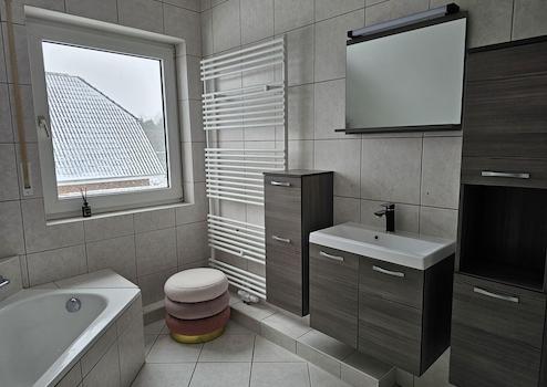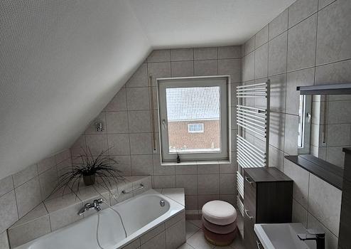 Das Obergeschoss bietet ein Badezimmer mit Dusche und Badewanne, ein Schlafzimmer und drei weitere Zimmer (davon ein Durchgangszimmer), die beispielsweise als Kinderzimmer und/oder Büros genutzt werden können. Vier Heizungen, sowie der Fußbodenbelag wurden hier in 2025 erneuert.