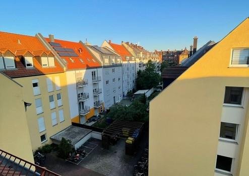 Von der Wohnung aus genießt man einen herrlichen Weitblick bis zum Wöhrder See. Die Innenausstattung beinhaltet auch eine moderne Küchenzeile.