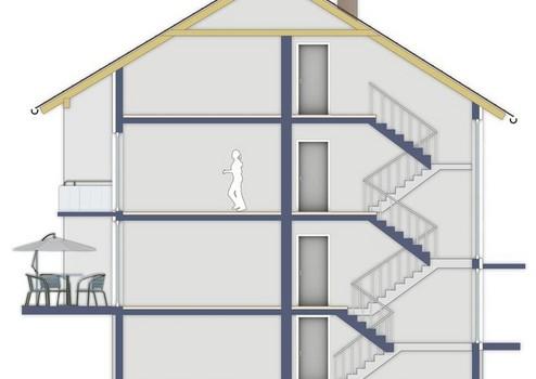 Das Haus verfügt über Keller, Erdgeschoss, Obergeschoss und Dachgeschoss.