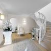 Bereits beim Betreten empfängt Sie ein repräsentatives Entree mit hellem Steinboden und stilvoller Offenheit. Von hier aus erschließt sich das Erdgeschoss mit seinem beeindruckenden Wohn- und Essbereich. Großzügige Fensterfronten, ein eleganter Rundbogen sowie maßgefertigte Schreinereinbauten verleihen diesem Raum eine besondere Atmosphäre. Die Fußbodenheizung im Wohn- und Essbereich sorgt für behaglichen Komfort, während der Blick ins eigene Grün ein Gefühl von Freiheit vermittelt.
