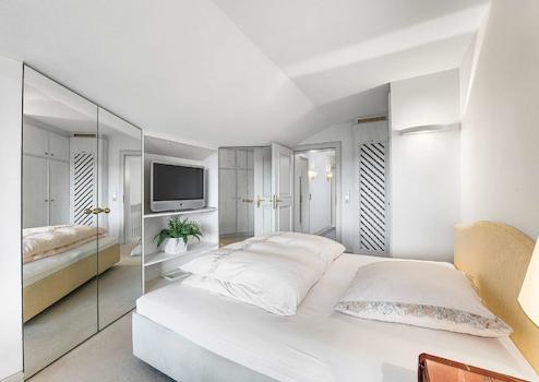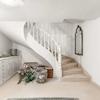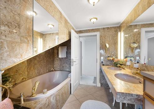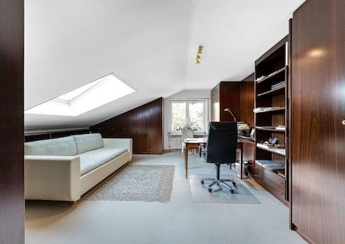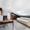 Im Obergeschoss erwarten Sie die privaten Rückzugsräume. Das großzügige Schlafzimmer mit maßgefertigten Einbauten und Zugang zum Balkon bietet einen wunderbaren Blick in den Garten. Ein weiteres flexibel nutzbares Zimmer – aktuell als Arbeitsbereich genutzt – überzeugt mit charmanten Dachschrägen, großem Dachfenster und hochwertigen Einbauten. Zwei stilvolle Tageslichtbäder, eines mit Regendusche, eines mit Badewanne und Doppelwaschbecken, unterstreichen den gehobenen Wohnkomfort.